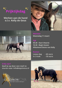 Een dag waarop je het geleerde niet alleen begrijpt, maar ook gaat voelen en toepassen. Je gaat zelf aan de slag met je paard, leert observeren, bijsturen en afstemmen op de horsenality die jullie samenwerking uniek maakt.