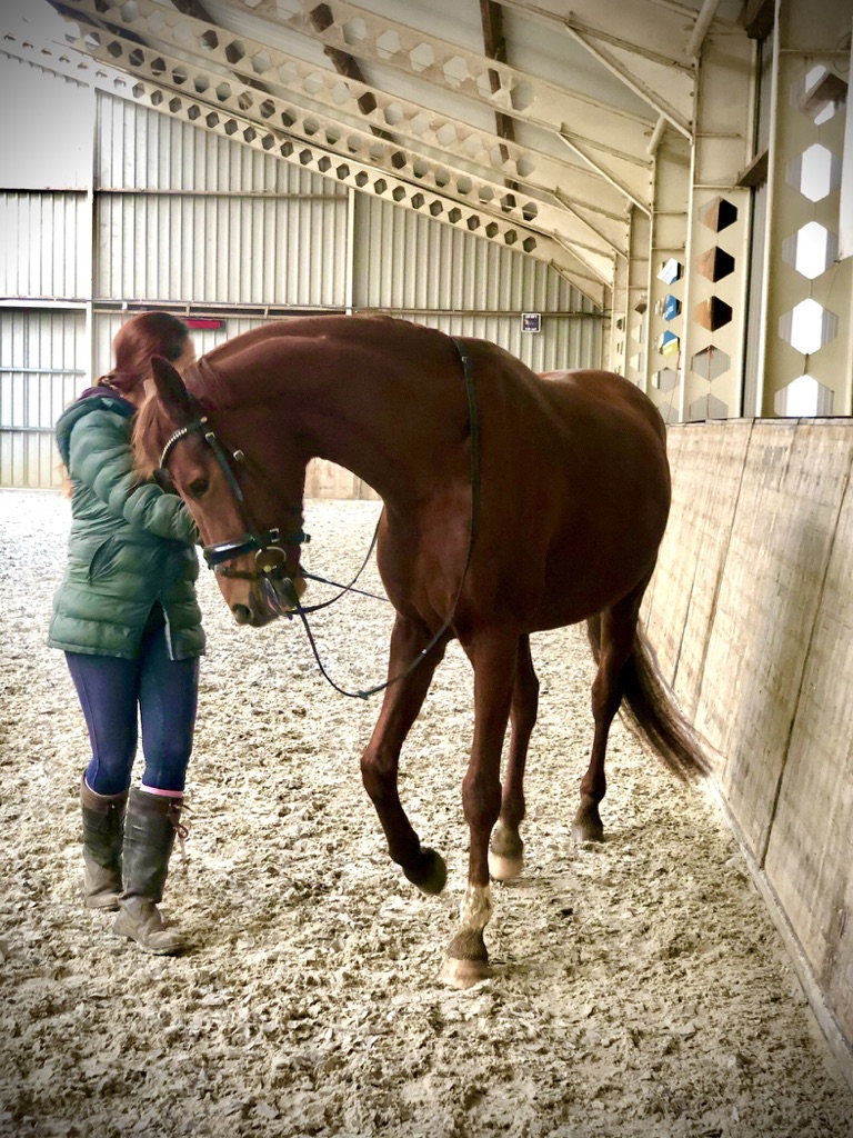 Het paard Chapeaux, 6 jaar oud, heeft de laatste 3 jaar nogal wat problemen gekend op het fysieke en mentale vlak. Dit hield het volgende in dat het paard nogal wat pijn had en dit was niet te verklaren. We hebben heel wat adviezen ingewonnen en verschillende dierenartsen hebben naar het paard gekeken en we zijn naar verschillende klinieken geweest. Hierbij is vast komen te staan dat het paard lichamelijke problemen had in de hals en dit is d.m.v van Injecties opgelost. Paard had geen pijn meer maar bleef gedrag vertonen wat we niet konden thuisbrengen o.a. stakingsgedrag, zomaar stoppen en achteruitlopen en niet meer voorwaarts te krijgen. Er zijn heel veel mensen mee bezig geweest om te kijken waar dit gedrag van het paard vandaan zou kunnen komen.